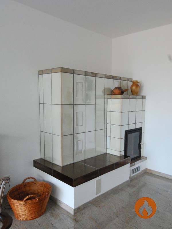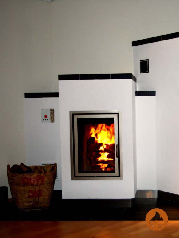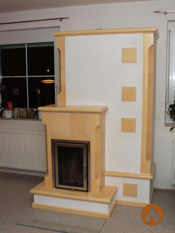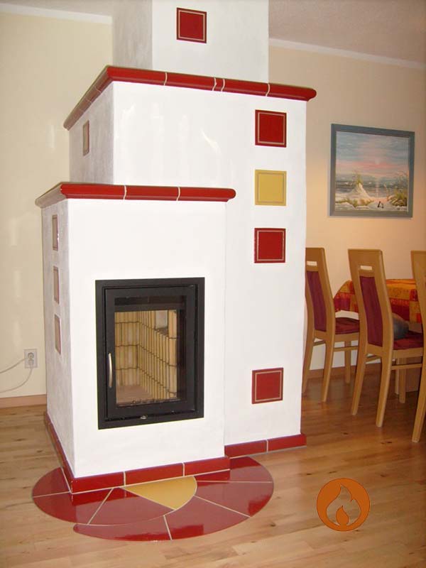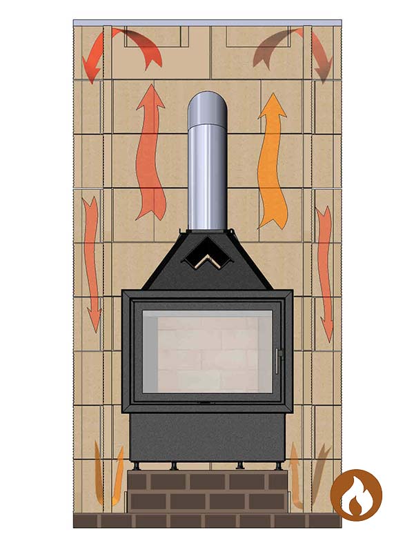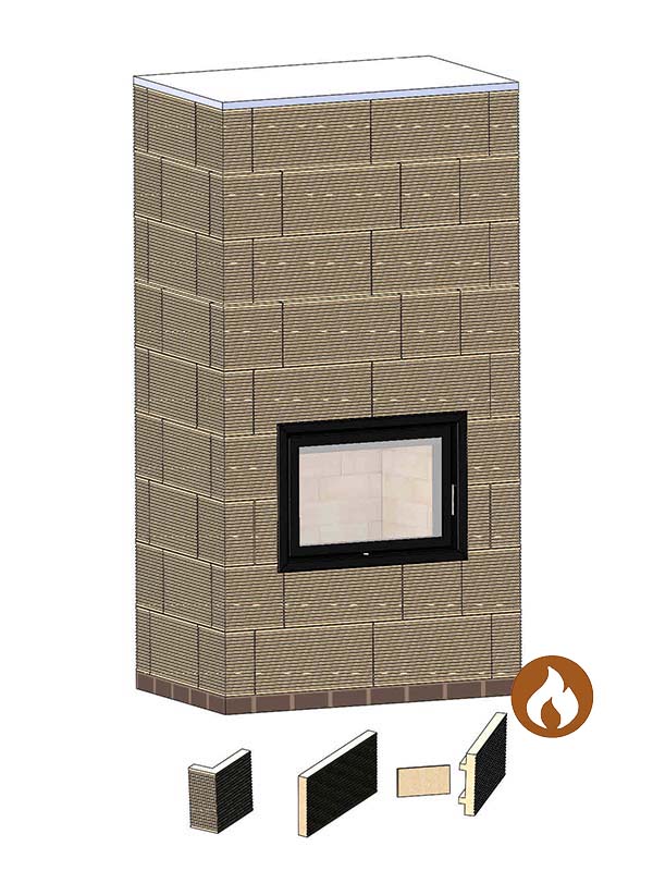 За красивой керамической оболочкой находится теплоемкая из шамотных плит Акумол для придания камину теплоаккумулирующей массы.